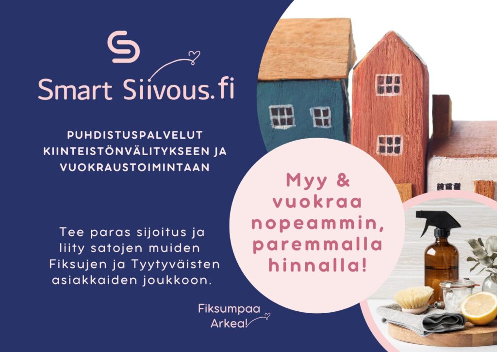 Asunnon tai liiketilan ensivaikutelma ratkaisee. Siisti, raikas ja huolellisesti puhdistettu kohde herättää enemmän kiinnostusta, näyttää paremmalta kuvissa ja myydään tai vuokrataan nopeammin – usein myös paremmalla hinnalla. Smart Siivous Oy tarjoaa ammattitason puhdistuspalvelut kiinteistönvälitykseen ja vuokraustoimintaan Kokkolassa ja lähialueilla. Autamme kiinteistönvälittäjiä, sijoittajia, yksityisiä vuokranantajia ja yrityksiä tekemään fiksumman sijoituksen siiteyteen ja puhtauteen. Puhdas Koti ja […]